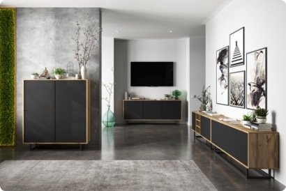 Nie ważne czy szukasz mebli loftowych, industrialnych, minimalistycznych czy mebli w stylu skandynawskim – nasz sklep z meblami oferuje starannie wykonane wyposażenie do salonu z wysokiej jakości materiałów w przystępnej cenie. Ponadto, kolekcje z naszej oferty możesz personalizować, aby idealnie trafiały w Twoje gusta. Nasz sklep z meblami loftowymi umożliwia wybór spośród wielu kolorów frontów, stalowych ram oraz matowego lub błyszczącego wykończenia naszych produktów. Dzięki temu jako producent mebli oferujemy szafki pod telewizor oraz komody, które z łatwością dopasujesz do Twojego stylowego wnętrza!